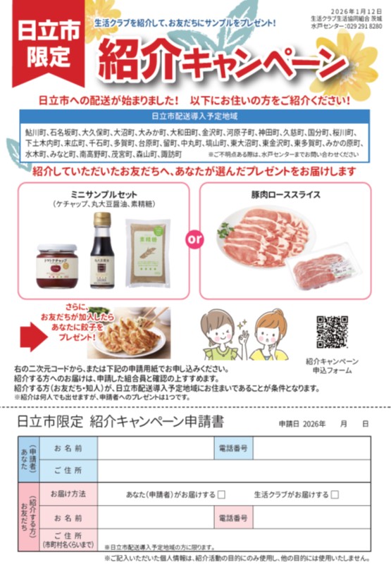 日立市にお住いのお知り合いや友人の方へ生活クラブを紹介してみませんか♪