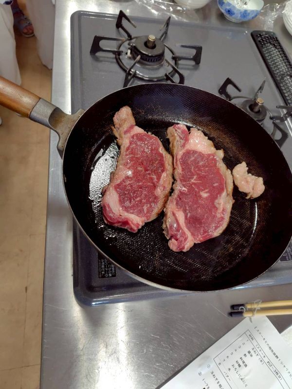 生産者の話の後は、生産者の調理のデモンストレーション。そして全員で調理後は、ステーキ・牛丼を美味しくいただきました!