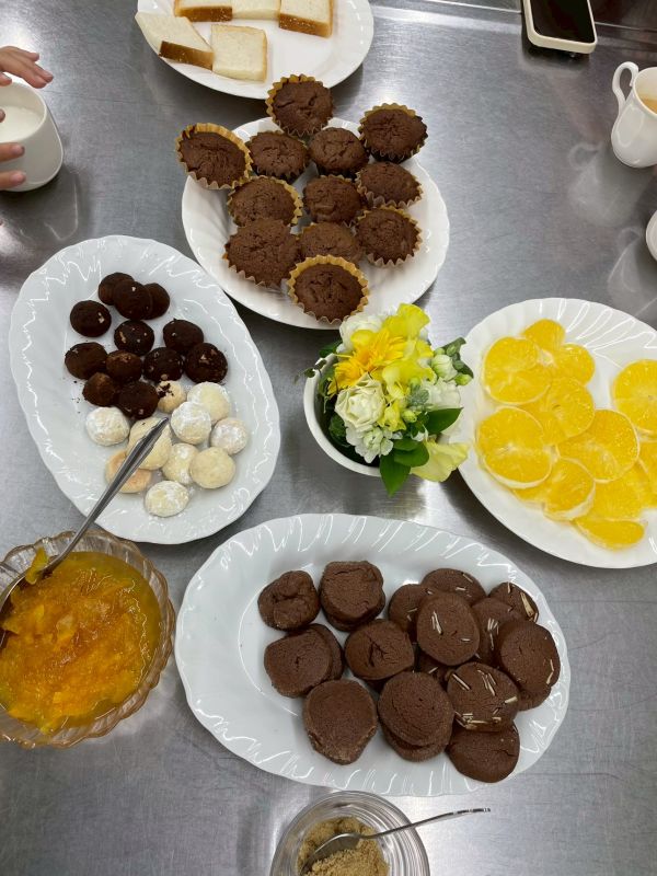 焼き菓子作りは、子ども達もスノーボールクッキーの生地を丸めたり、仕上げの粉糖を振ったりとても楽しそうでした。